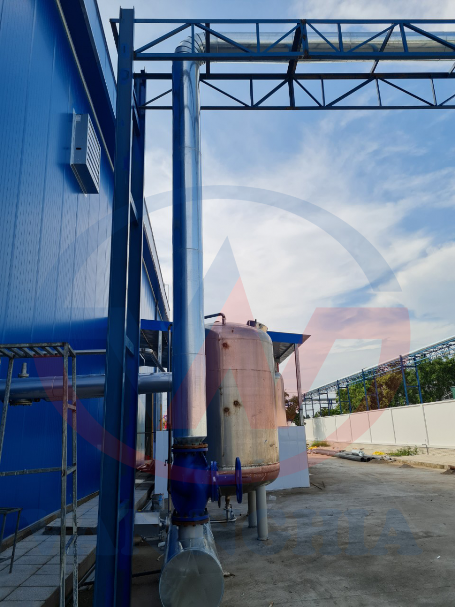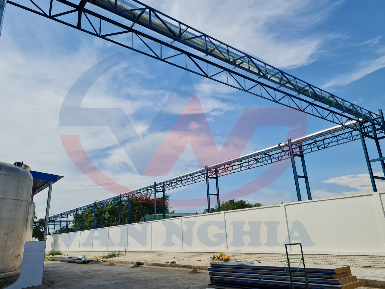 Hình ảnh hiện trường Bọc Bảo Ôn Hệ Thống Đường Ống Hơi Nóng tại Nhà máy Nam Việt, Cần Thơ