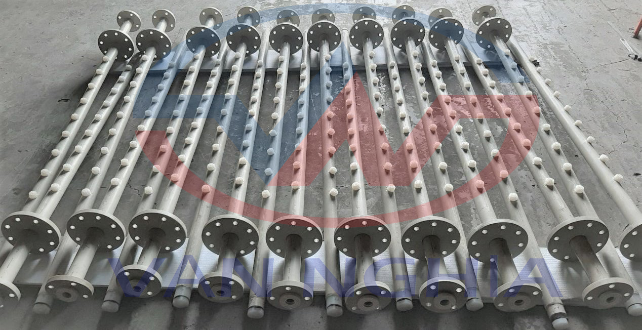 Vật liệu gia công gồm: Ống nhựa PPH, Ống thép đúc, Đầu béc phun PP,...