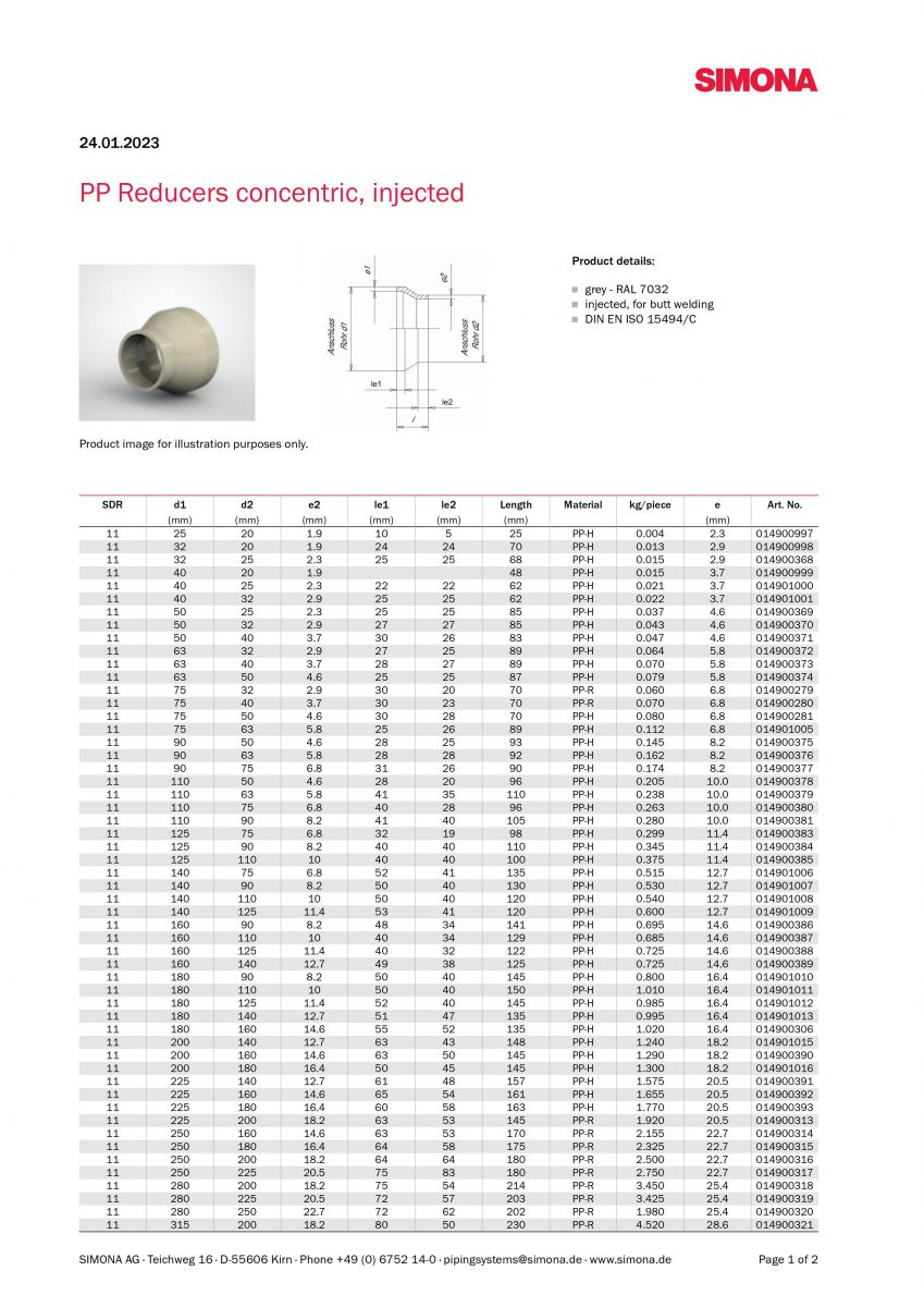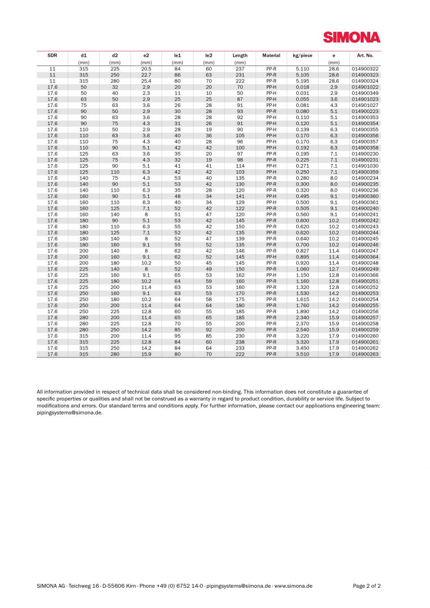 Xuất xứ: SIMONA Đức; Kiểu kết nối hàn đối đầu và hàn socket