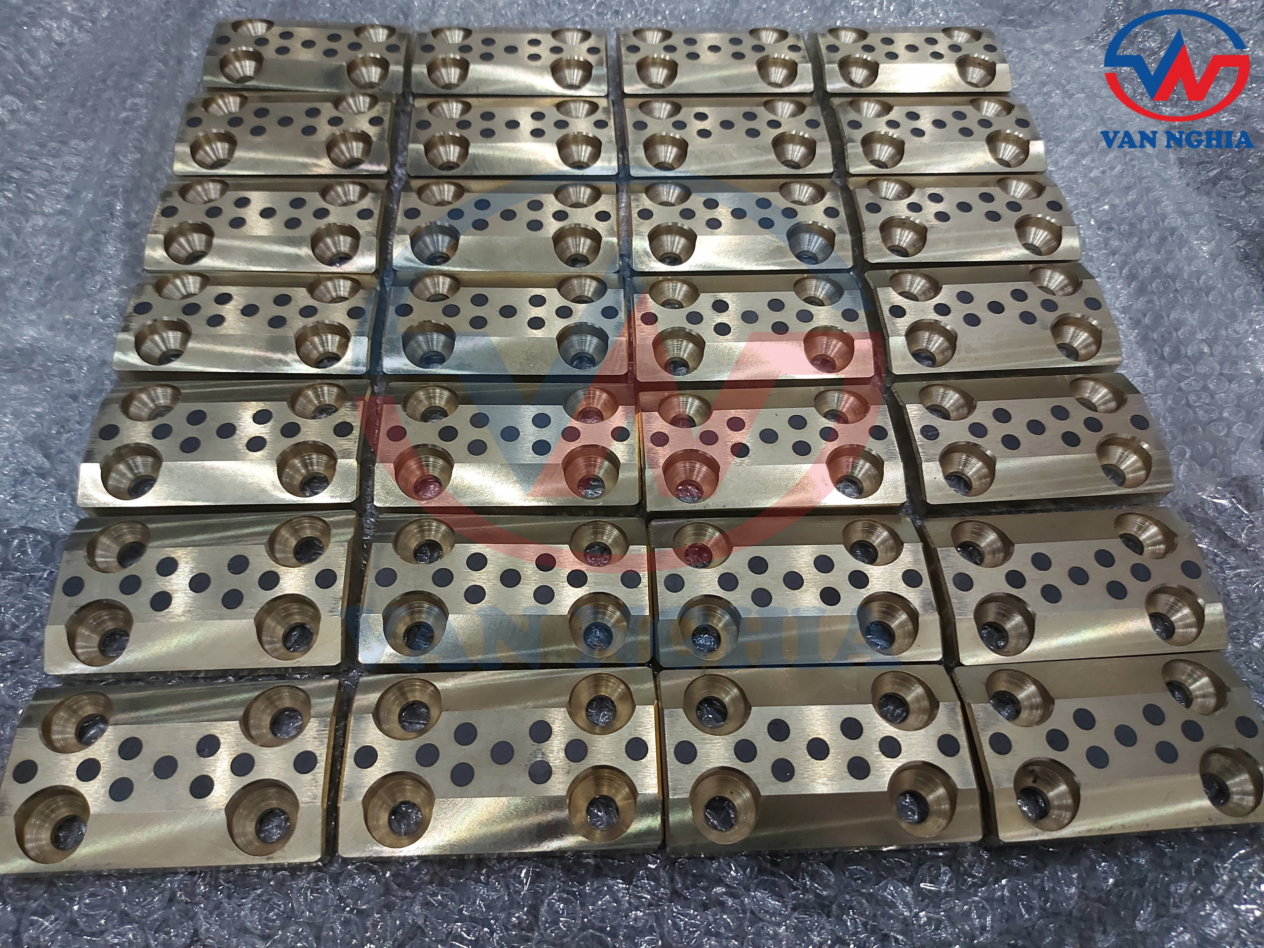 Vạn Nghĩa cung cấp các loại Tấm trượt tự bôi trơn được làm từ vật liệu: Graphite + đồng thau , có khả năng chống mài mòn và tính năng tự bôi trơn (Không bảo dưỡng dầu hoặc mỡ); hoạt động ở Nhiệt độ: ~40 + 300 độ C và ứng dụng cho các dây chuyền lắp ráp ô tô, Tubin nước, máy ép nhựa,...