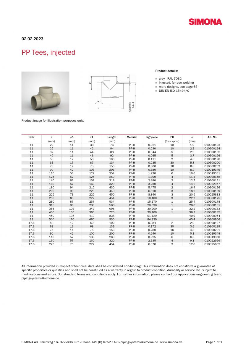 Xuất xứ: SIMONA Đức; Kiểu kết nối hàn đối đầu và hàn socket