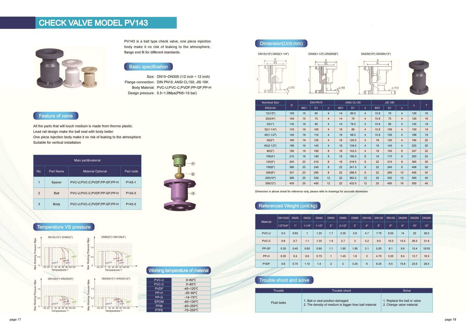Materials: PVC/CPVC/PVDF/PPH/PP