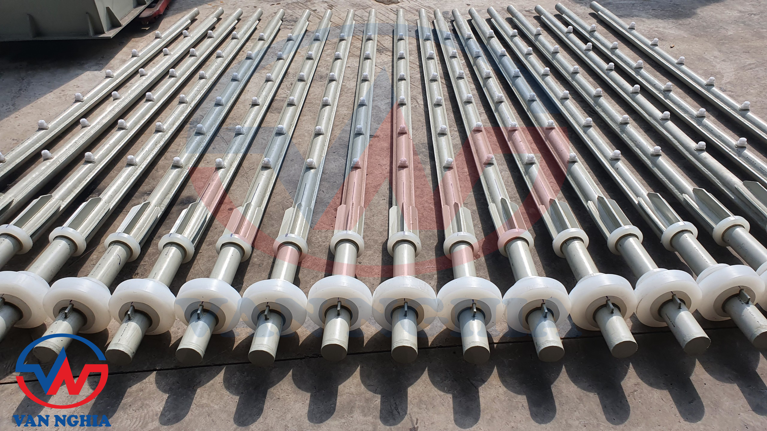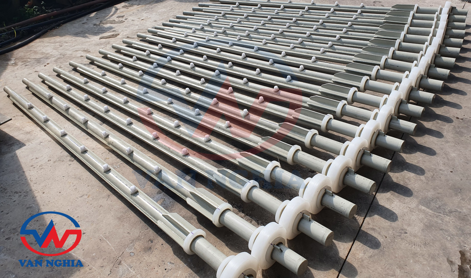 Vật liệu gia công gồm: Ống nhựa PPH, Ống thép đúc, Đầu béc phun PP,...