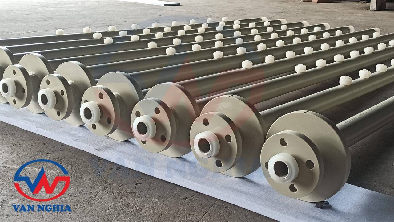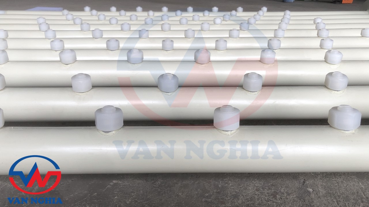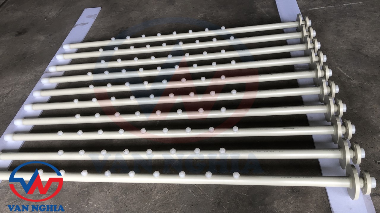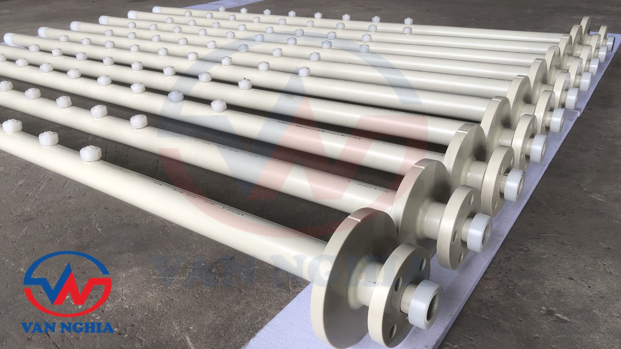 Vật liệu gia công gồm: Ống nhựa PPH, Ống thép đúc, Đầu béc phun PP,...