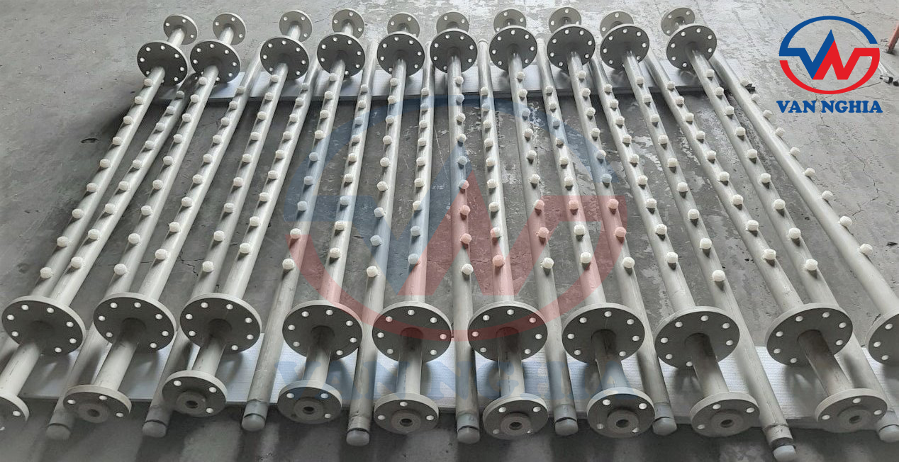 Vật liệu gia công gồm: Ống nhựa PPH, Ống thép đúc, Đầu béc phun PP,...