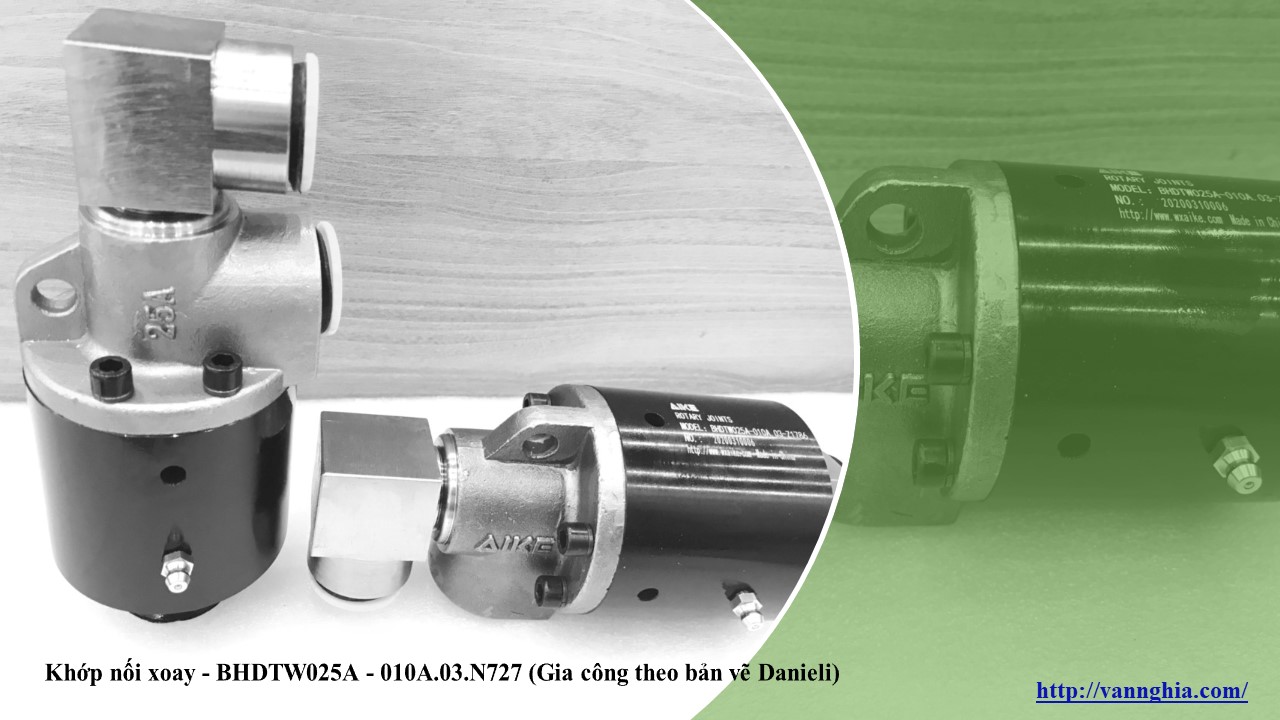 Khớp nối xoay BHDTW025A - 010A.03.N727 được gia công theo bản vẽ thiết kế DANIELI, thuộc kiểu kết nối có ren. Được ứng dụng để cung cấp hơi nóng, khí nén, dầu truyền nhiệt, dầu thủy lực, dầu bôi trơn.... cho các chi tiết quay. Xuất xứ Trung Quốc